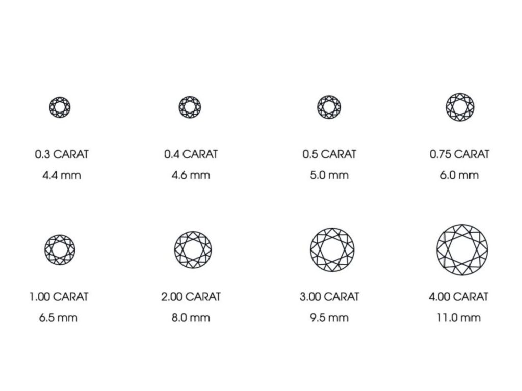 The key takeaway: size relates to what the eye sees. It is the result of carat weight and how the diamond is cut.