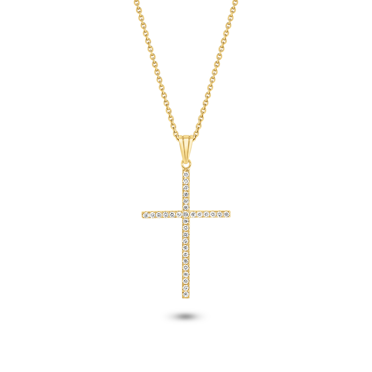 18K Yellow Gold Claw Set Fine Diamond Cross Pendant-Large