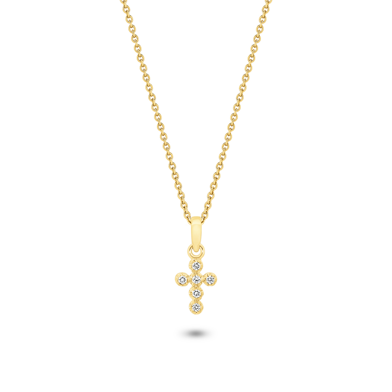 5 - 7 business daysFrom our Faith Jewellery Collection, this diamond cross pendant is a cherished treasure, symbolising grace and timeless allure. Crafted in 18K Yellow Gold and featuring 6 round brilliant cut diamonds totalling 0.04ct in a cut-claw setting. Creating a mesmerising display of brilliance, making it a meaningful and exquisite addition to your jewellery collection. Pendant only, chain not included.