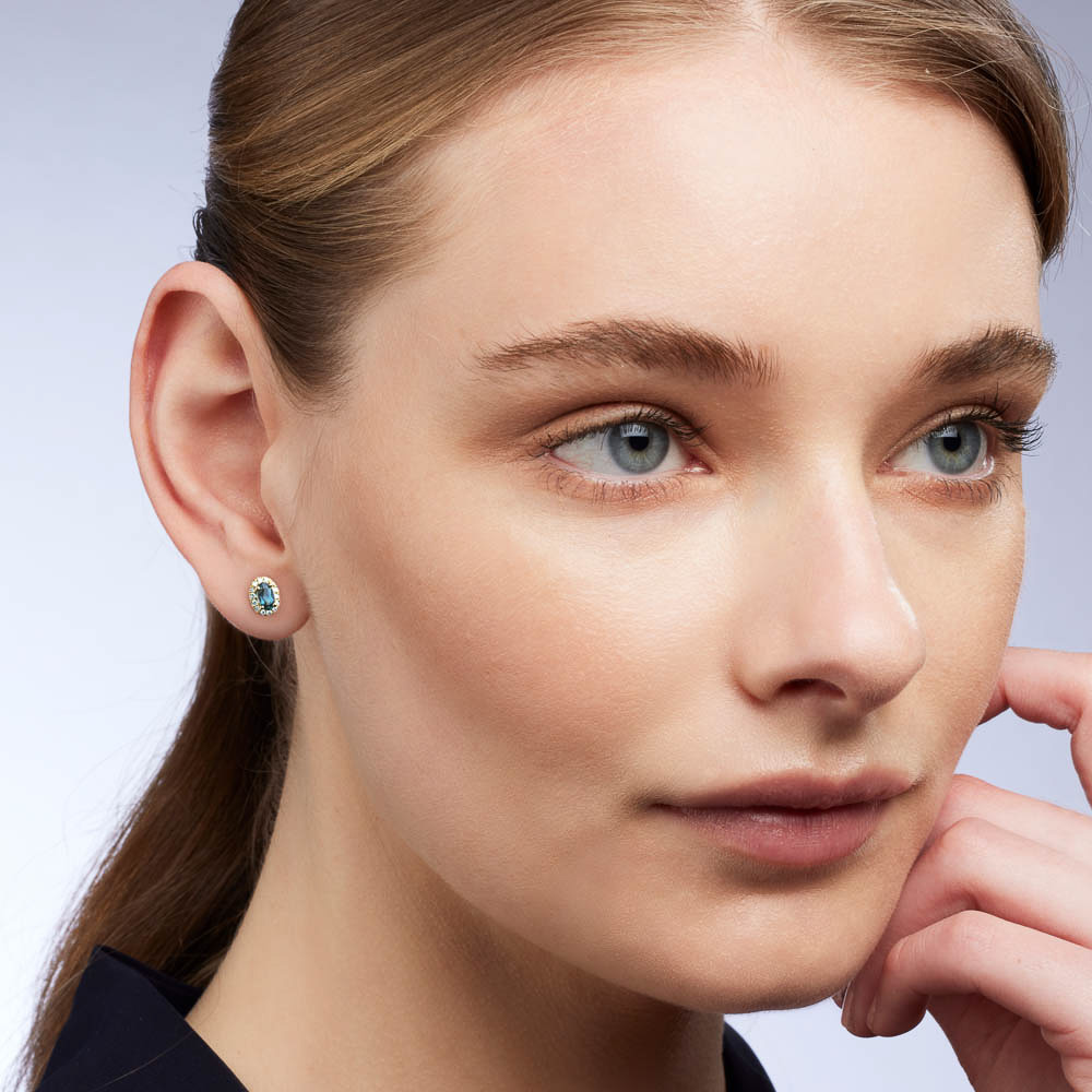 Exuding elegance and grace, the Sapphire Dreams Clarissa Earrings feature two oval shaped Blue Australian Sapphires, surrounded by a halo of sparkling round cut White Diamonds. Set in durable 18K Yellow Gold, these stud earrings are the perfect addition to your everyday style.