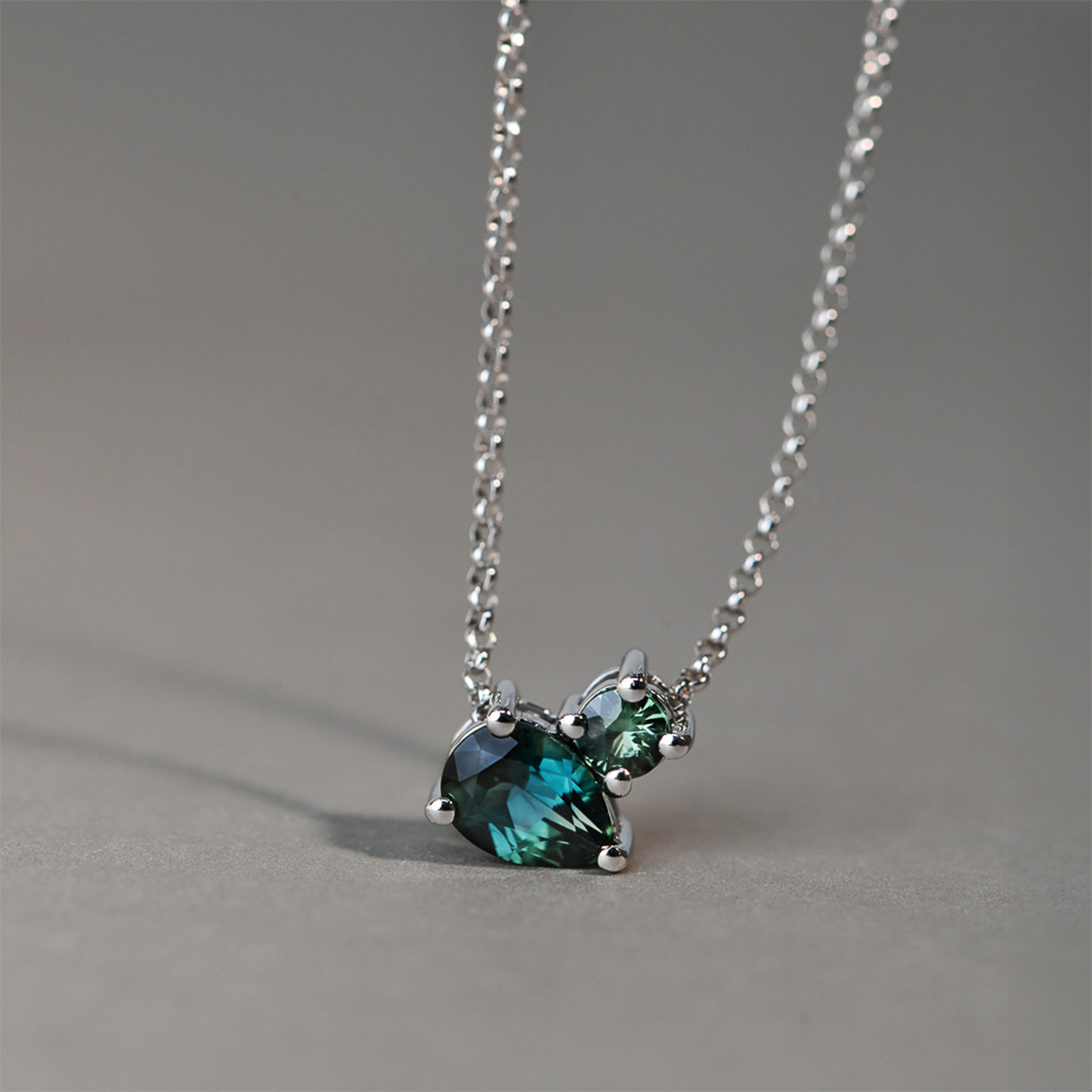 Blue & Teal Australian Sapphire Toi Et Moi Necklace