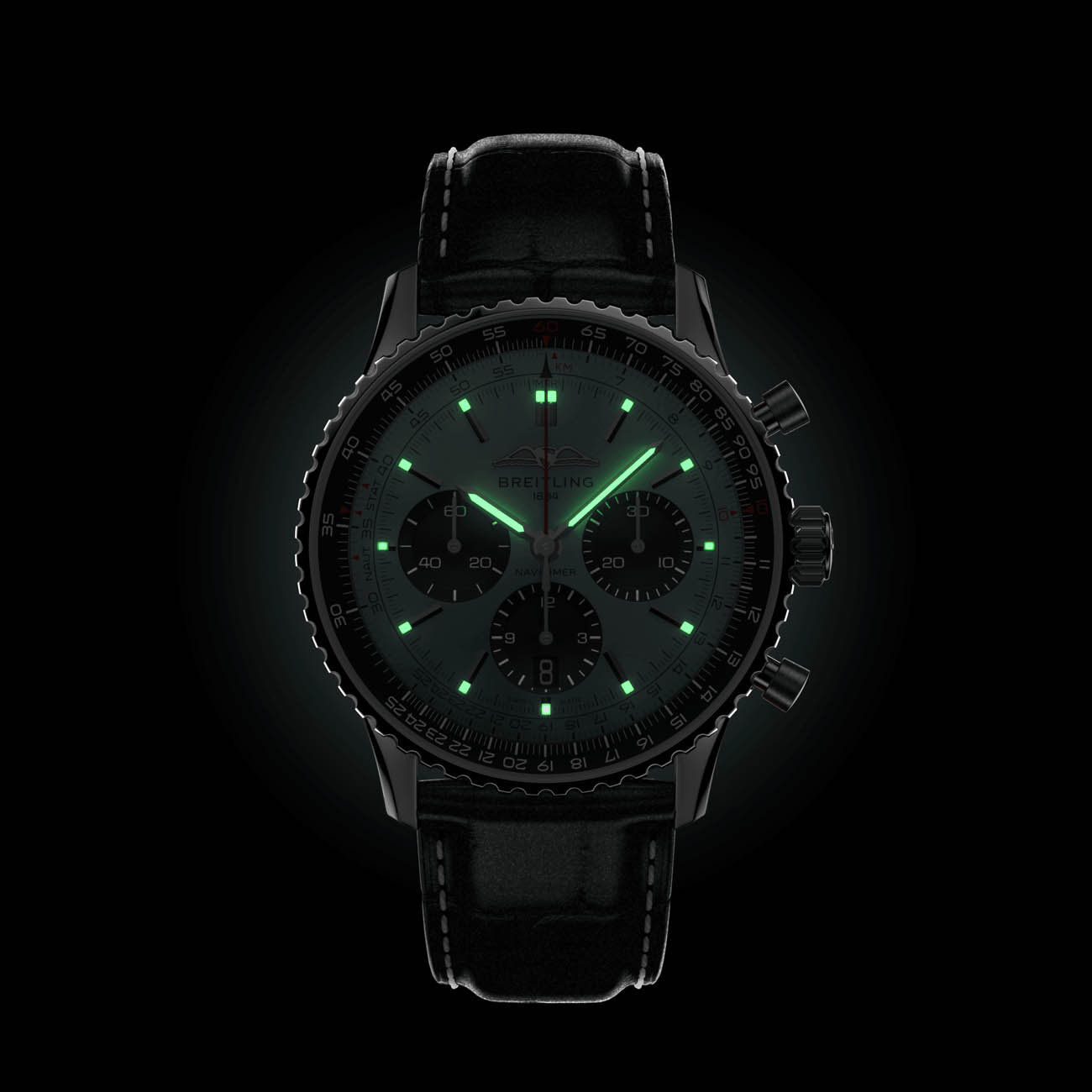 The Breitling Navitimer B01 Chronograph 43mm pays tribute to the original design from the 1950s, featuring an ice blue dial with contrasting black counters indicating the elapsed seconds, minutes and hours. Housed in a stainless steel case with a black bi-directional bezel that powers the iconic circular slide rule. Matched on a black alligator leather strap to complete the vintage look. Self-winding COSC-certified Breitling 01 Calibre offering up to 70 hours power reserve, this watch is a testament to superior precision and reliability.