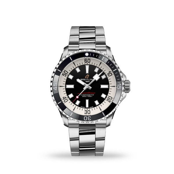 The Breitling Superocean Automatic 42mm perfectly balances the nostalgia of its heritage with a modern look, delivering exceptional performance and style. The classic black dial is complemented by over-sized luminescent indices, squared-off hands, and a high-contrast dial ring, all aimed at maximum legibility. Housed in a stainless-steel case featuring a ceramic-inlayed bezel and fitted with a metal bracelet with micro-adjustment for easy wear, this model is water-resistant up to 300m, as well as shock, sand, and saltwater-resistant. From the depths to the waves and all the way to elegant affairs, this watch is your ultimate versatile companion.