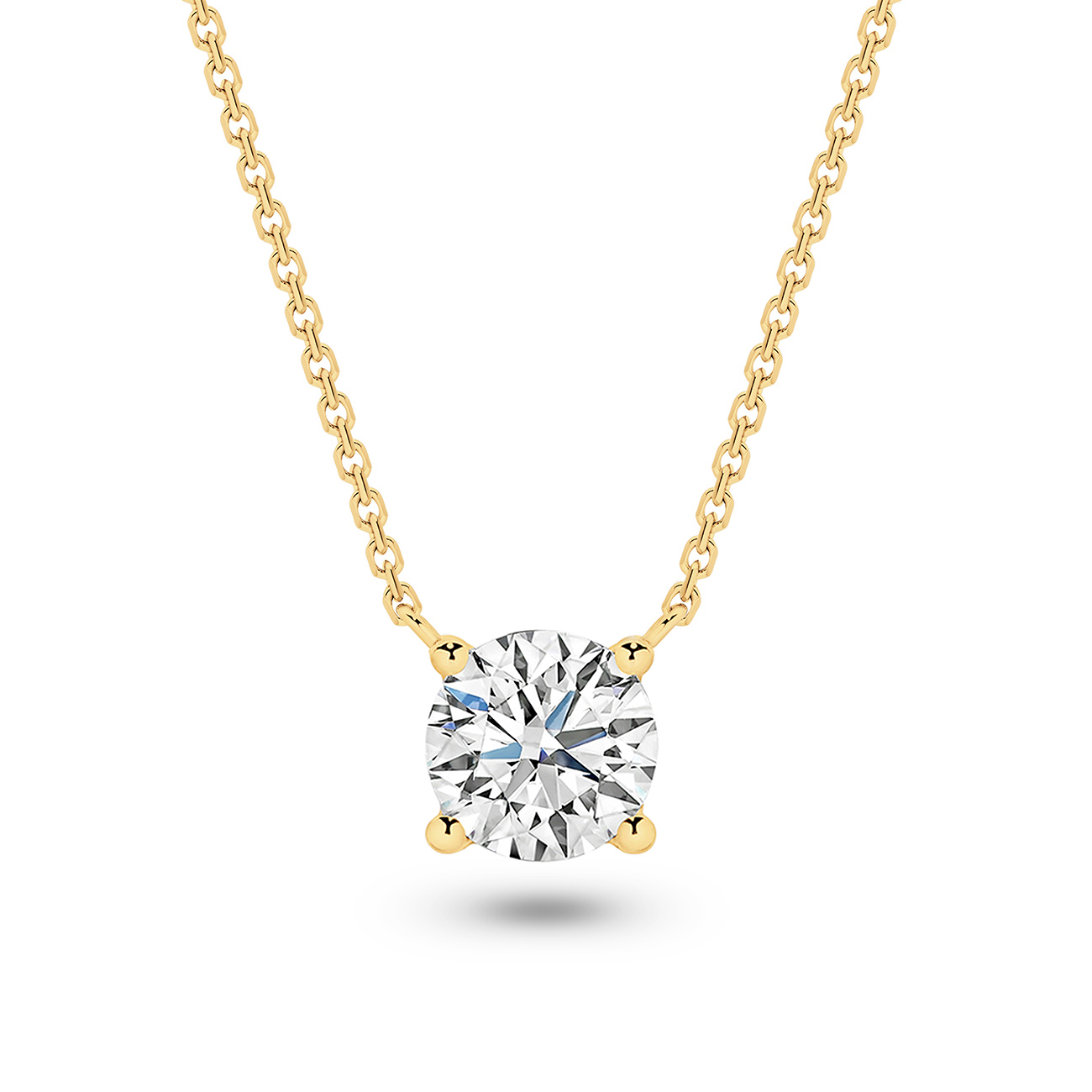 Classic Solitaire Round Brilliant Lab Diamond Necklace In 18K Yellow Gold 3ct