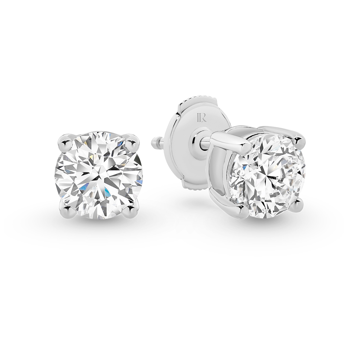 - Additional: One Pink Lab Diamond is set on the back of each earring. The photo displaying the back of earring features the 3.00ct classic solitaire round brilliant stud earrings.