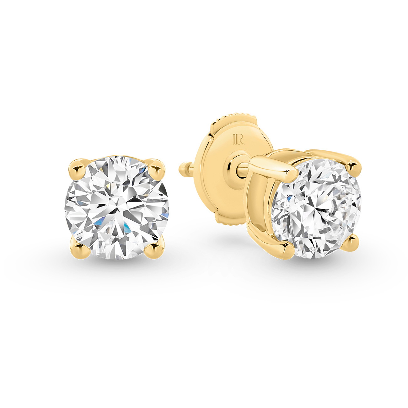 Classic Solitaire Round Brilliant Lab Diamond Stud Earrings In 18K Yellow Gold 3ct