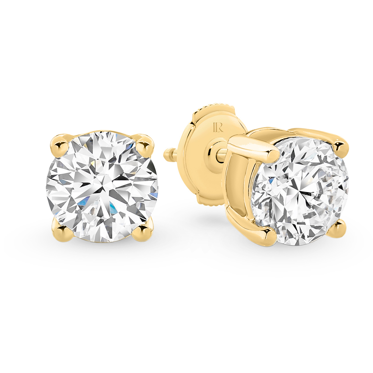 Classic Solitaire Round Brilliant Lab Diamond Stud Earrings In 18K Yellow Gold 4ct