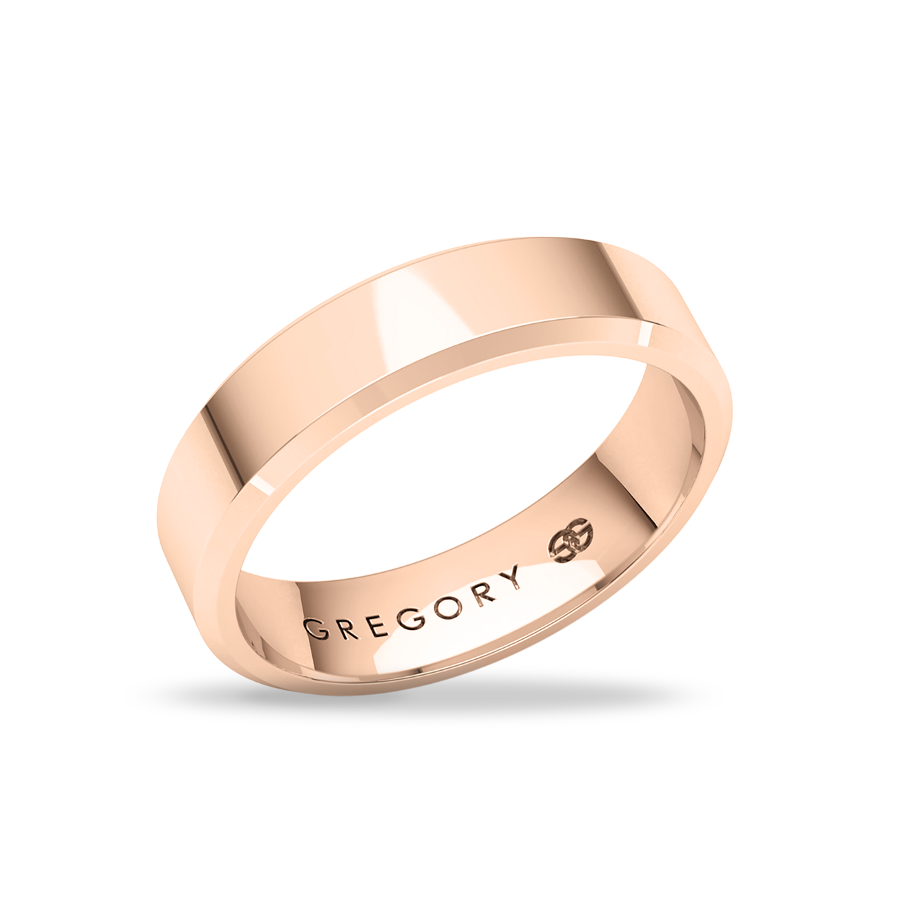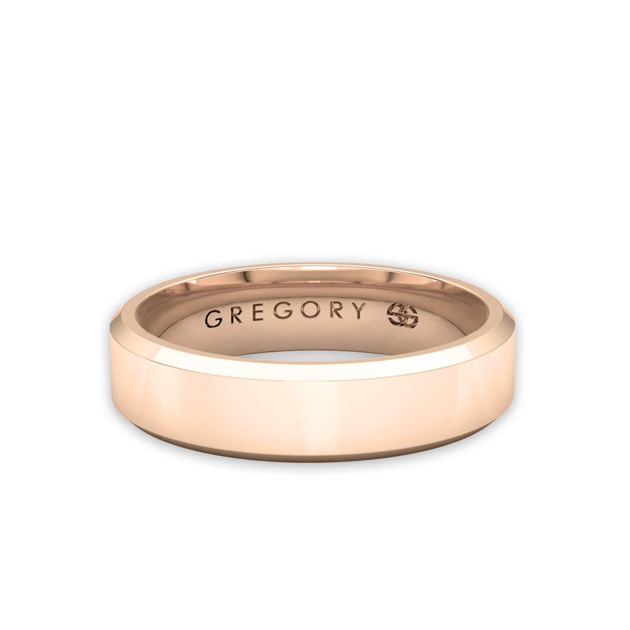 This classic wedding band features a high-polished finish and a flat profile with bevelled edges for a contemporary look. The comfort-fit interior ensures a smooth, secure feel for effortless all-day wear. Expertly crafted in Australia from 18K rose gold, it offers enduring strength, lasting durability, and timeless sophistication – made to be cherished for a lifetime.