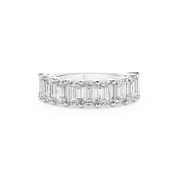 Emerald Cut Lab Diamond Claw Set Band In 18K White Gold – Large