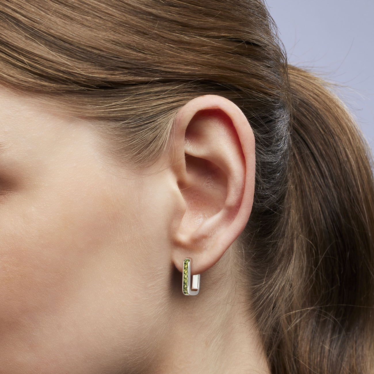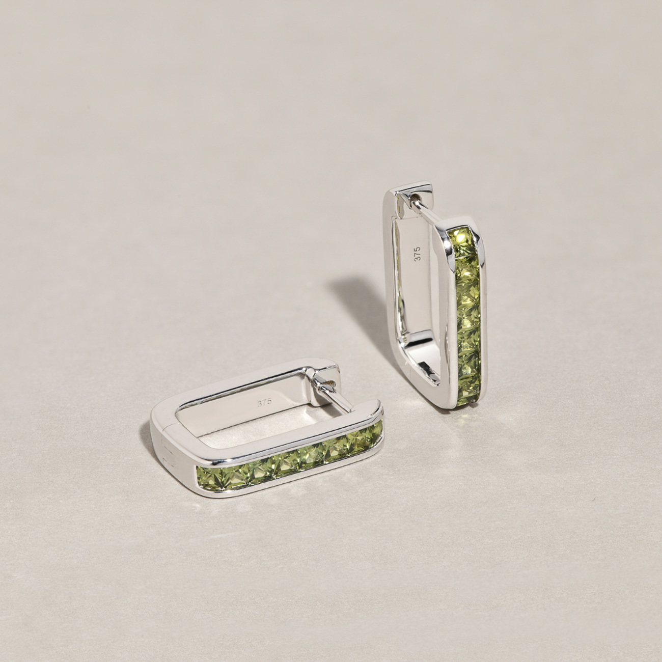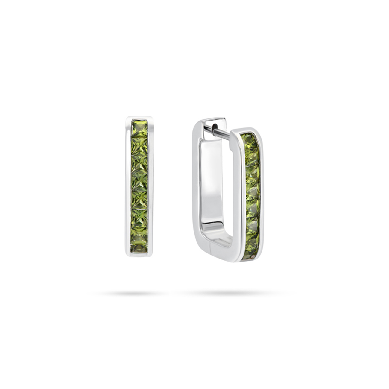 The Jules hoop earrings feature a stunning channel set row of princess cut, green Australian sapphires, neatly set in 9k white gold. These earrings add a chic pop of colour to your daily style, and can be effortlessly paired with other earrings for a modern look.