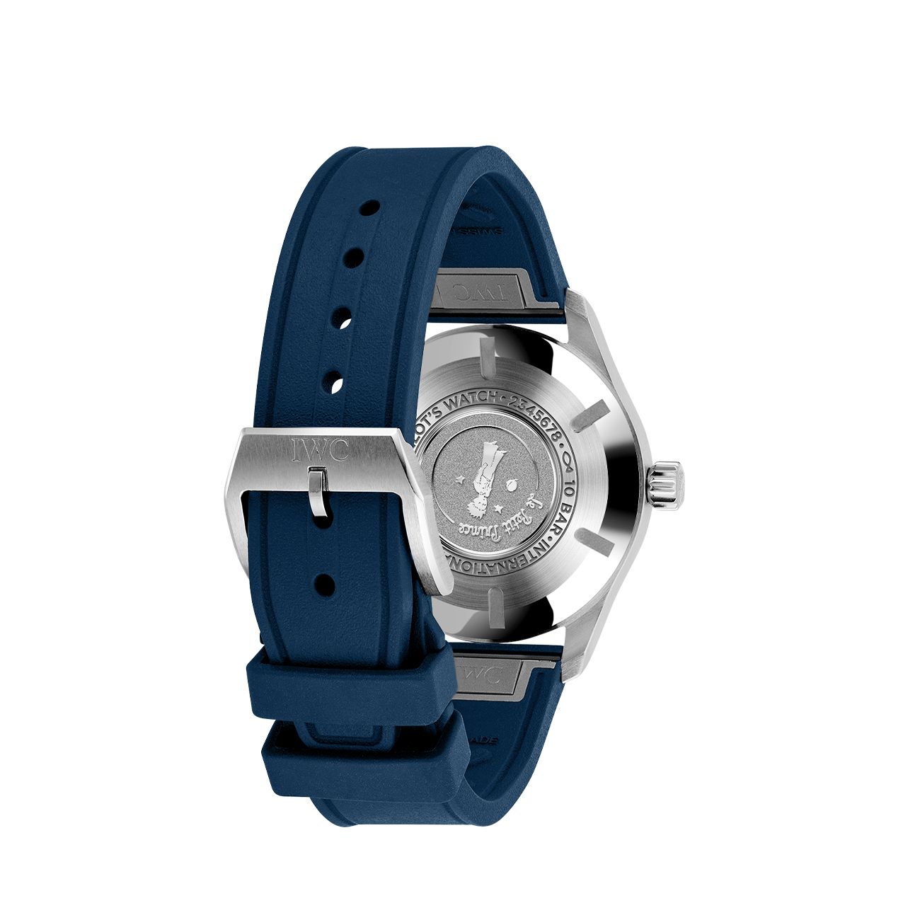 This IWC Pilot’s Watch Mark XX “Le Petit Prince” blends aviation heritage with literary inspiration, featuring a deep blue sunburst dial and engraved caseback honouring the iconic story. Crafted in a 40mm stainless steel case, it is powered by the IWC-manufactured 32112 automatic movement with an impressive 120-hour power reserve. A blue rubber strap with EasX-CHANGE® system ensures comfort and versatility, while Super-LumiNova® hands and markers provide excellent legibility for everyday precision and travel-ready performance.