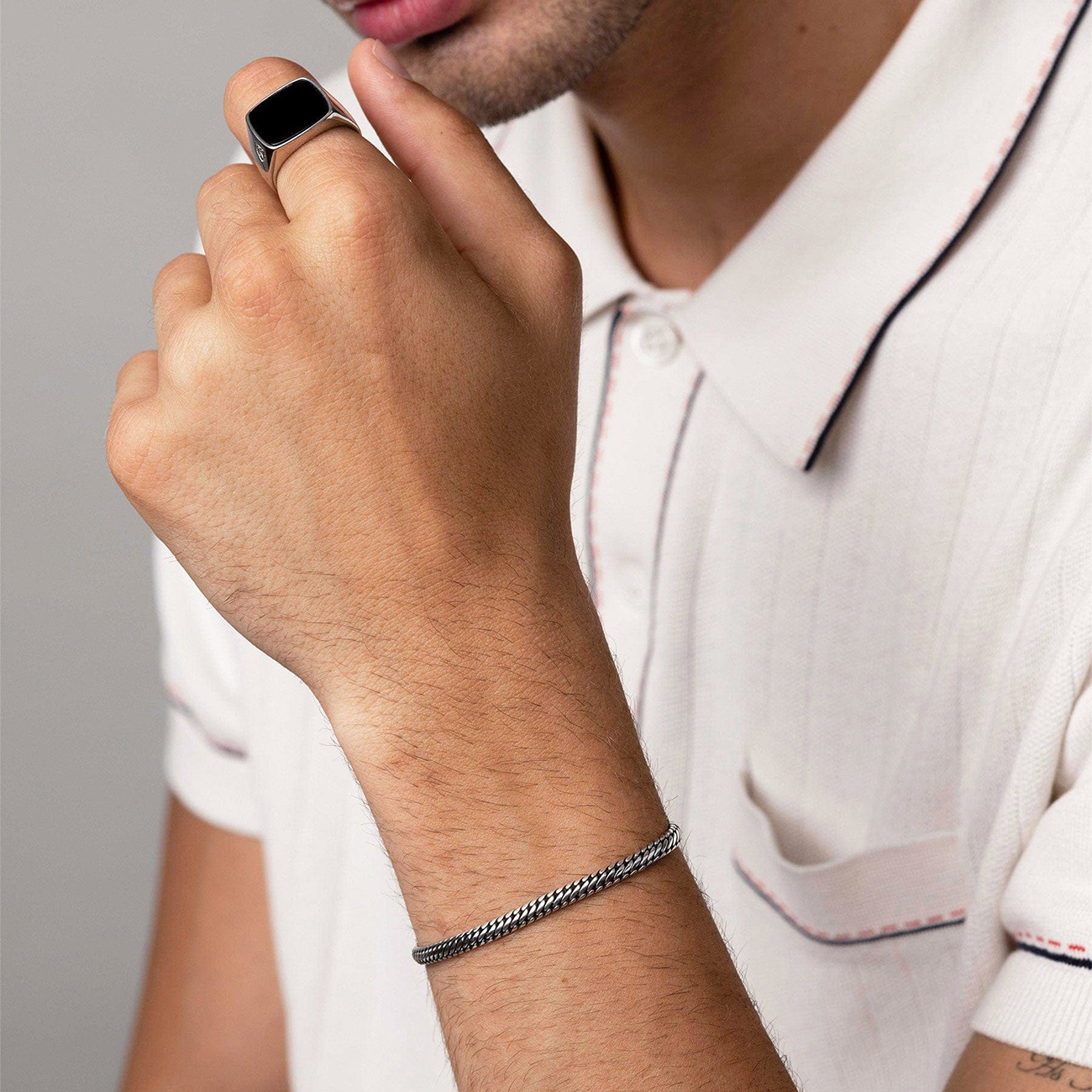 Nialaya Men’s Sterling Silver 4mm Chain Bracelet