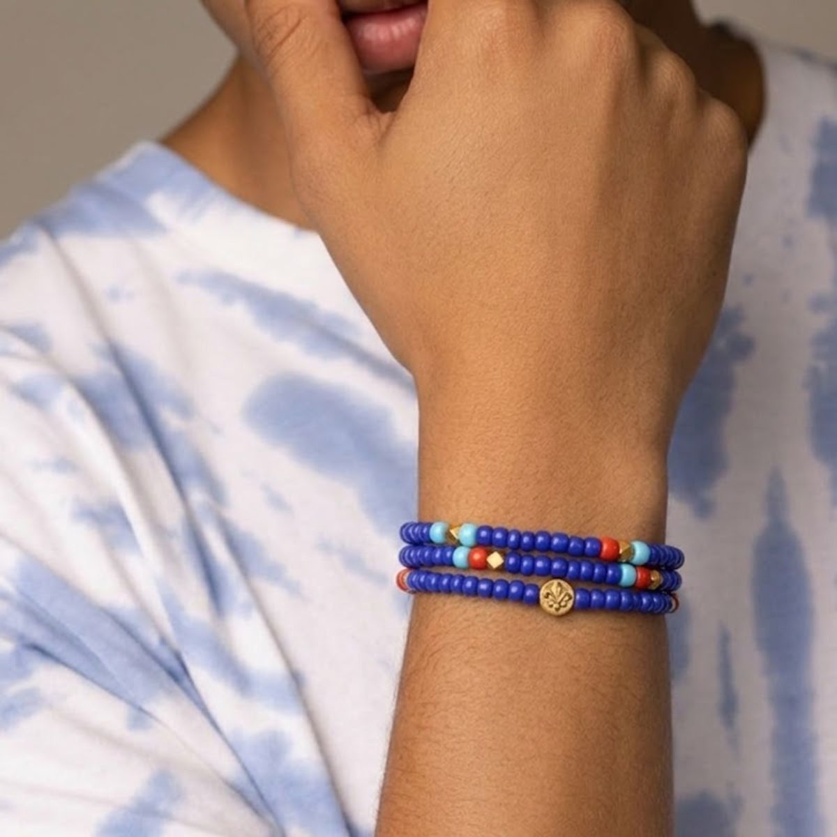 Nialaya The Mykonos Collection – Blue & Red Vintage Glass Beads