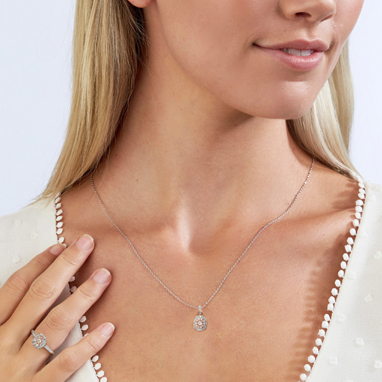 Featuring fancy light pink diamonds carefully designed into everyday wearable jewellery.