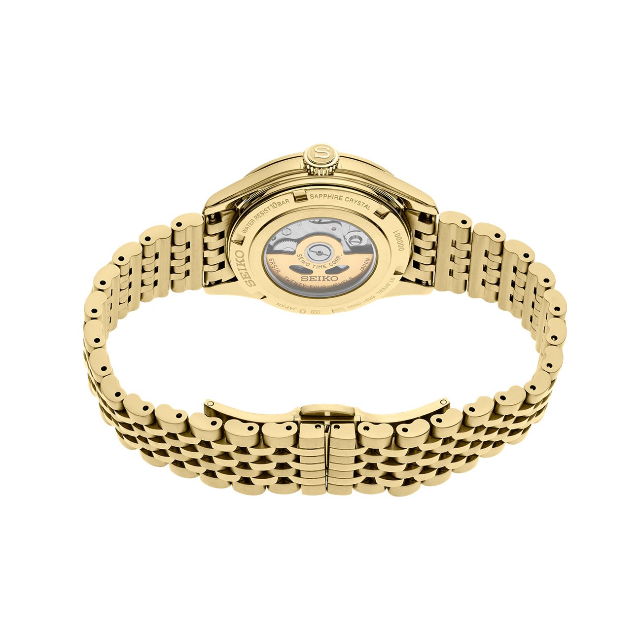 The Seiko Presage Classic Series SPB524J blends timeless elegance with refined craftsmanship. Its 36mm gold-toned stainless steel case and a 7-row bracelet frame a white textured dial, reminiscent of Japanese silk, that captures light with subtle depth and elegance. Powered by the precise automatic Calibre 6R51, it offers a 72-hour power reserve visible through the exhibition case back. Water-resistant to 100 metres, this Presage timepiece embodies understated sophistication – a perfect balance of classic style and modern watchmaking excellence.