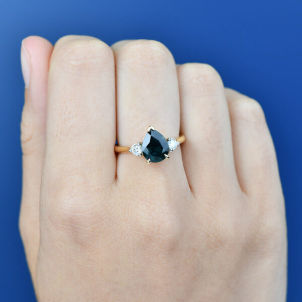 - Main Sapphire: Teal, Pear Cut, 1 = 2.62ct