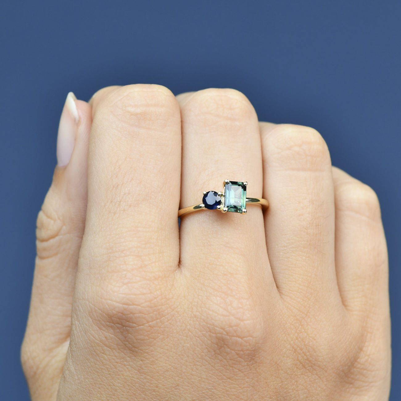 Teal & Blue Australian Sapphire Toi Et Moi Ring