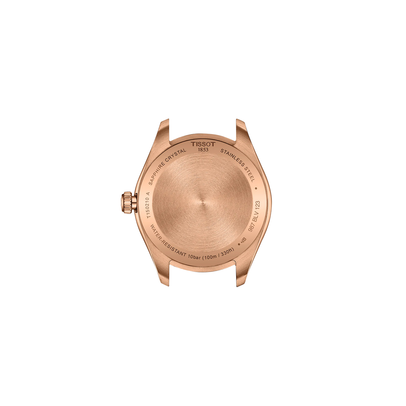 5 - 7 business daysThe Tissot PR 100 34mm combines timeless elegance and modern refinement, with rose gold features set against a rich brown dial. Luminous hands and indices ensure clear readability in any light, while the rose gold PVD stainless steel case is paired with a polished and brushed bracelet, complete with a quick-release system for effortless, tool-free adjustments. A subtle date display at 3 o’clock adds practical functionality, and the reliable quartz movement guarantees precise timekeeping without winding. Designed for everyday wear, this watch embodies Swiss craftsmanship and enduring style.