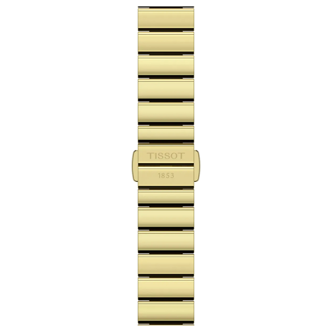 The Tissot SRV 30mm yellow gold is a stunning Art Deco-inspired women’s watch that blends vintage elegance with modern Swiss craftsmanship. Its rectangular case in yellow gold PVD complements a champagne dial with Roman numerals, protected by scratch-resistant sapphire crystal. Powered by a Swiss quartz movement with an End-of-Life indicator, it ensures reliable precision. A comfortable, interchangeable quick-release bracelet and 5-bar water resistance make this Tissot timepiece ideal for everyday sophistication and timeless style.