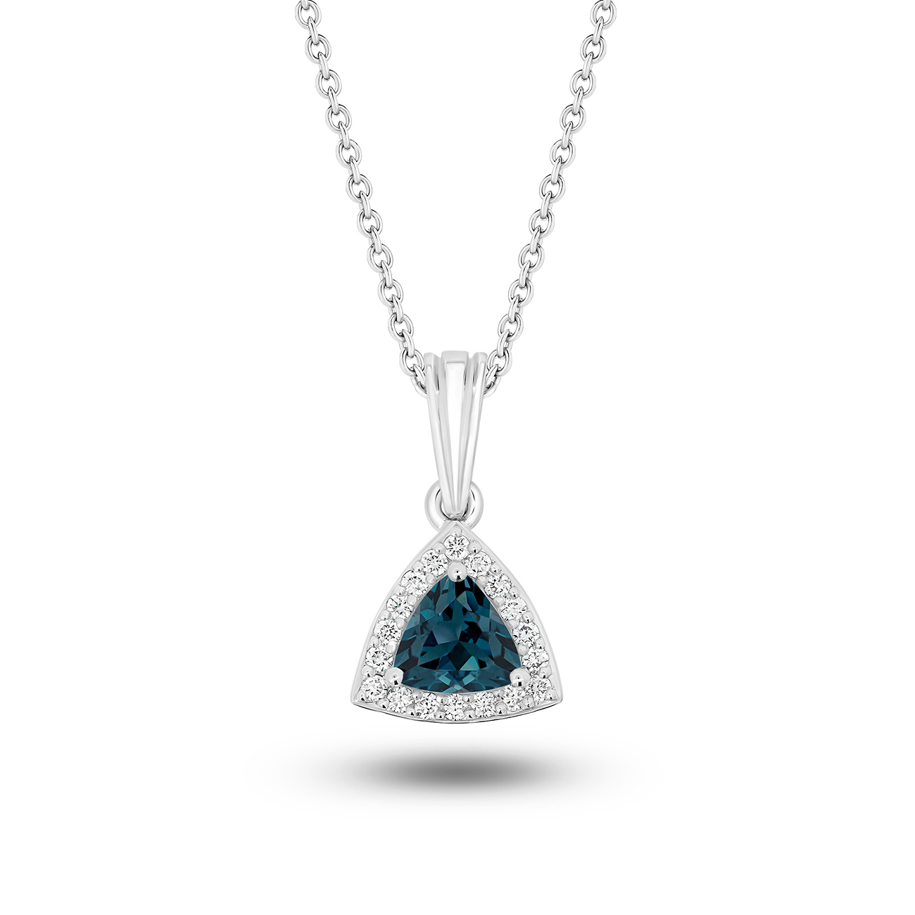 Trilliant London Blue Topaz & Diamond Halo Pendant in 18K White Gold