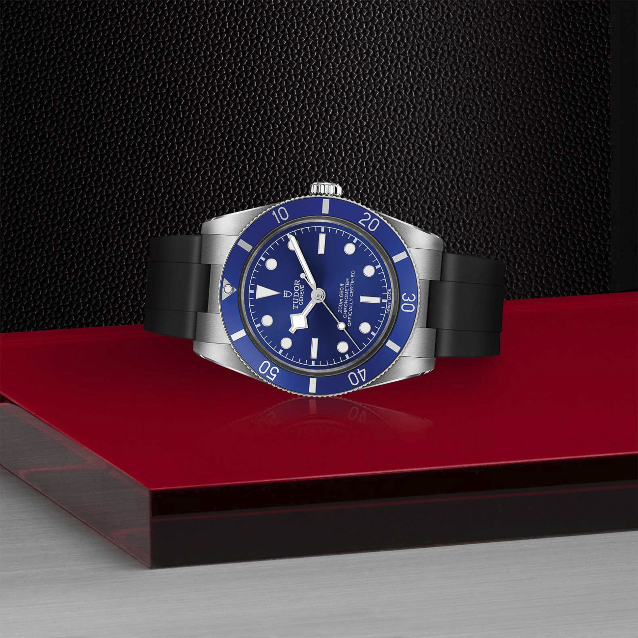 The Tudor Black Bay 54 captures the essence of the brand’s dive watches in a compact 37mm stainless steel case, offering a refined vintage-inspired silhouette with modern performance. Its sapphire blue dial and matching unidirectional bezel deliver a clean, nautical aesthetic, enhanced by luminous Snowflake hands and markers for excellent legibility in all conditions. Powered by the Calibre MT5400, it provides COSC-certified precision, a 70-hour power reserve, and dependable everyday reliability. Finished on a black rubber strap with Tudor’s T-Fit clasp, delivering a sporty, contemporary feel with enhanced comfort and versatility on the wrist.