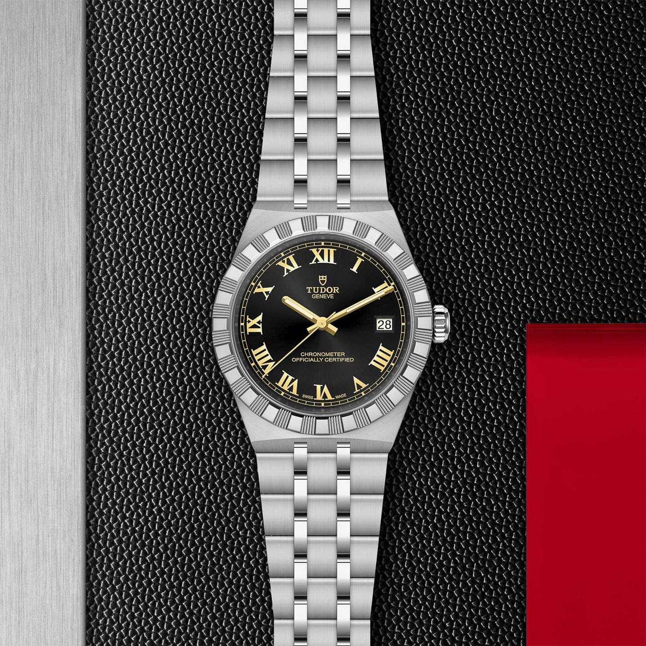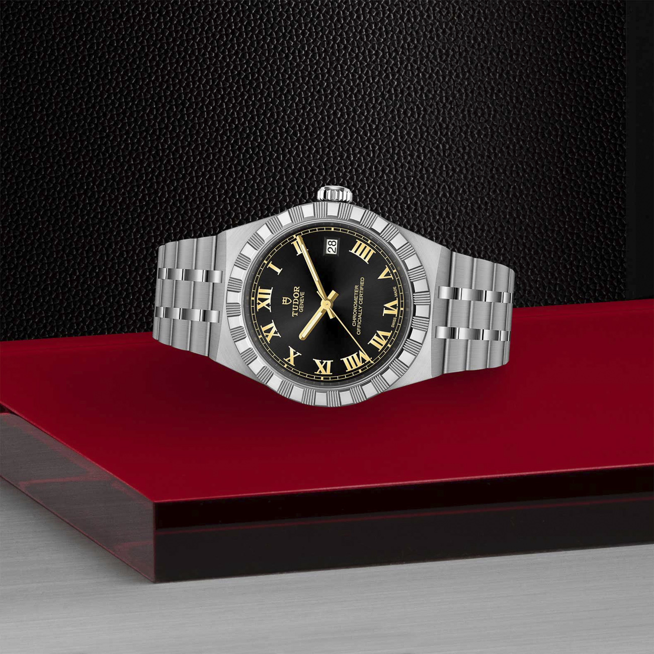 The TUDOR Royal 36mm Black Dial M2836C1A0-0101 embodies refined sport-chic styling with a polished and satin-finished stainless steel case and integrated five-link bracelet. Its black dial with applied Roman numerals and date display offers timeless contrast and elegance. Powered by the COSC-certified Manufacture Calibre MT5412 automatic movement, it delivers exceptional precision and a 70-hour power reserve. Finished with sapphire crystal and 100m water resistance, this Swiss-made timepiece balances durability with classic sophistication.