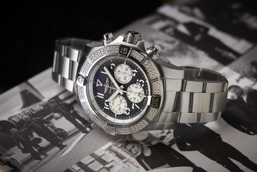 This Limited Edition also features a 104-Diamond set bezel with a total diamond weight of 0.96ct, another indication of its special limited-edition status. The Avenger Gregory Jewellers Limited Edition is powered by a Breitling Caliber 01 movement with a power reserve of approximately 70 hours and is water resistant to 30 bar/300 meters.